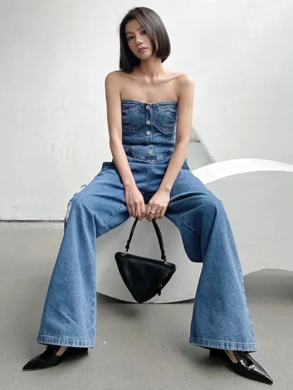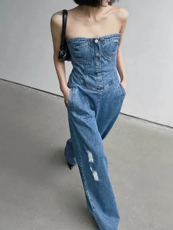 Alors, qu’attendez-vous ? Laissez-vous tenter par la magie du denim et du bustier, et offrez-vous cette combinaison unique en son genre. Vous ne le regretterez pas, car elle est conçue pour les esprits libres comme le vôtre.